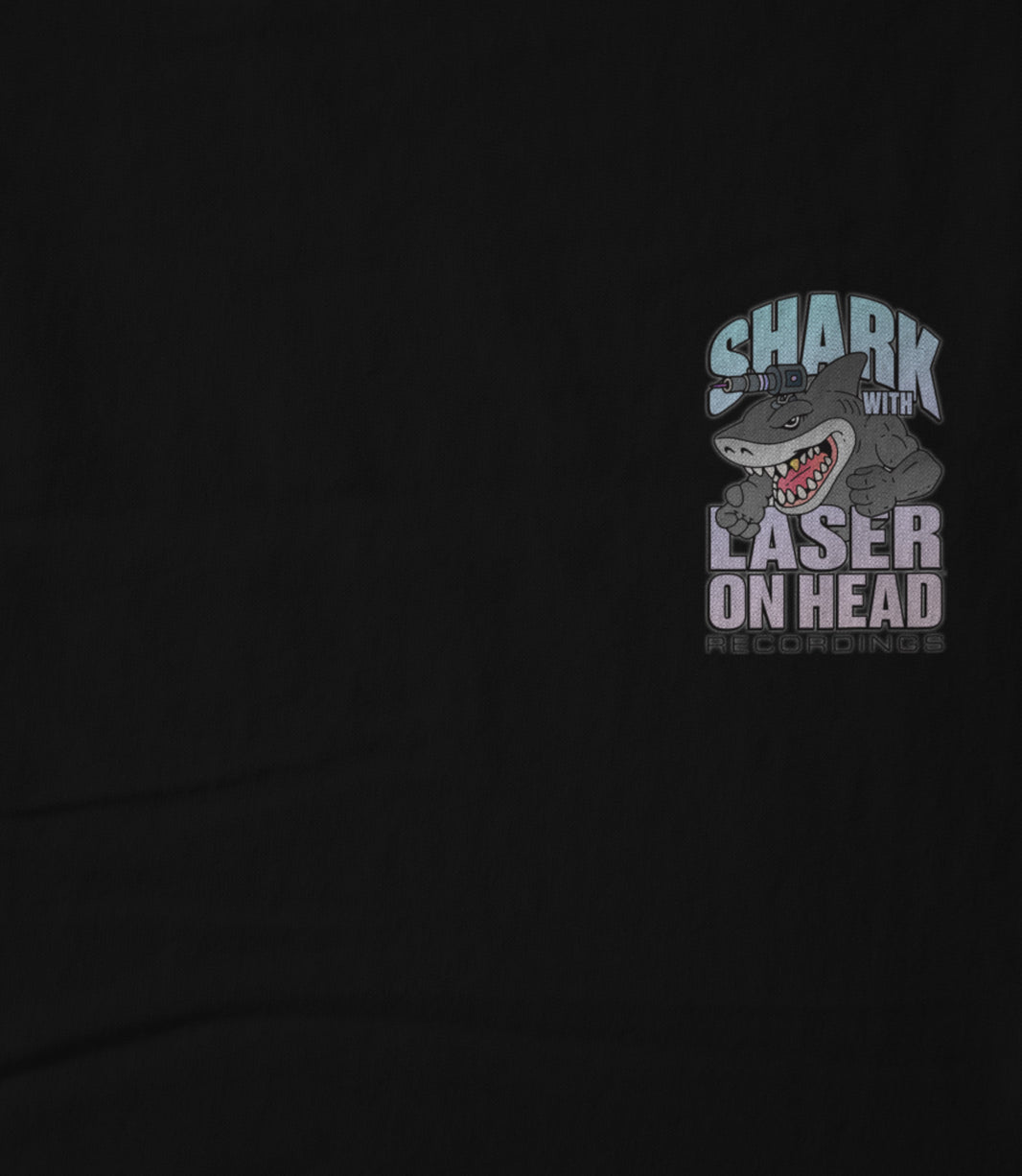 SHARK WITH LASER ON HEAD RECORDINGS Small Crest Logo (Black) Unisex T-shirt